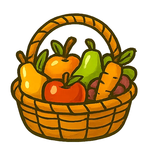 Ogórki, cukinia, zioła, jabłka (zależnie od zbiorów).