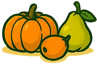 Stałe filary: pomidory, jajka, dynie. Dodatkowo (w zależności od zbiorów): ogórki, cukinia, zioła, jabłka.
